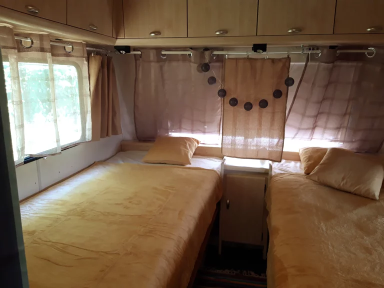 ~ 2 Schlafbereiche (Doppelbett 1,40m x 2,00m und 2 Einzelbetten 0,80m x 2,00m)