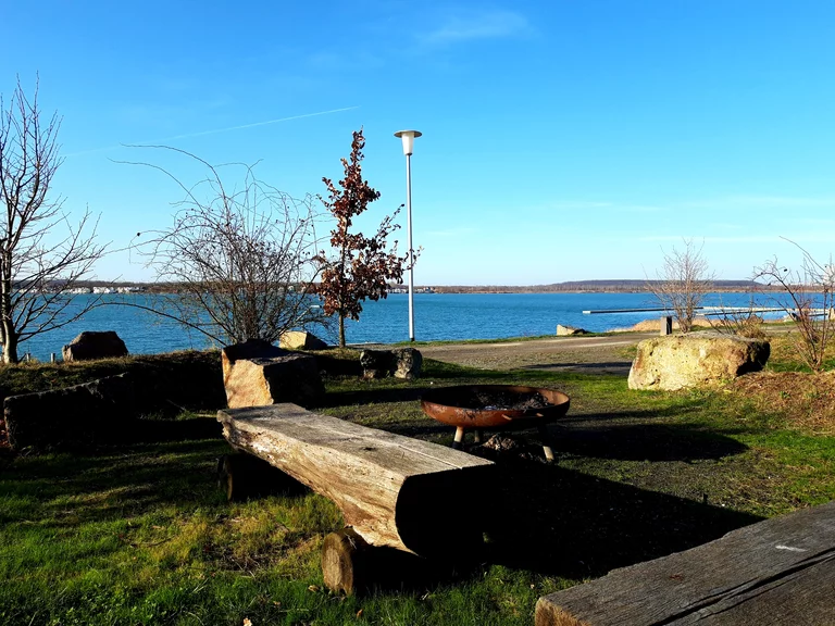 ~ Grundstück mit einfachem Grill und Gartenmöbeln